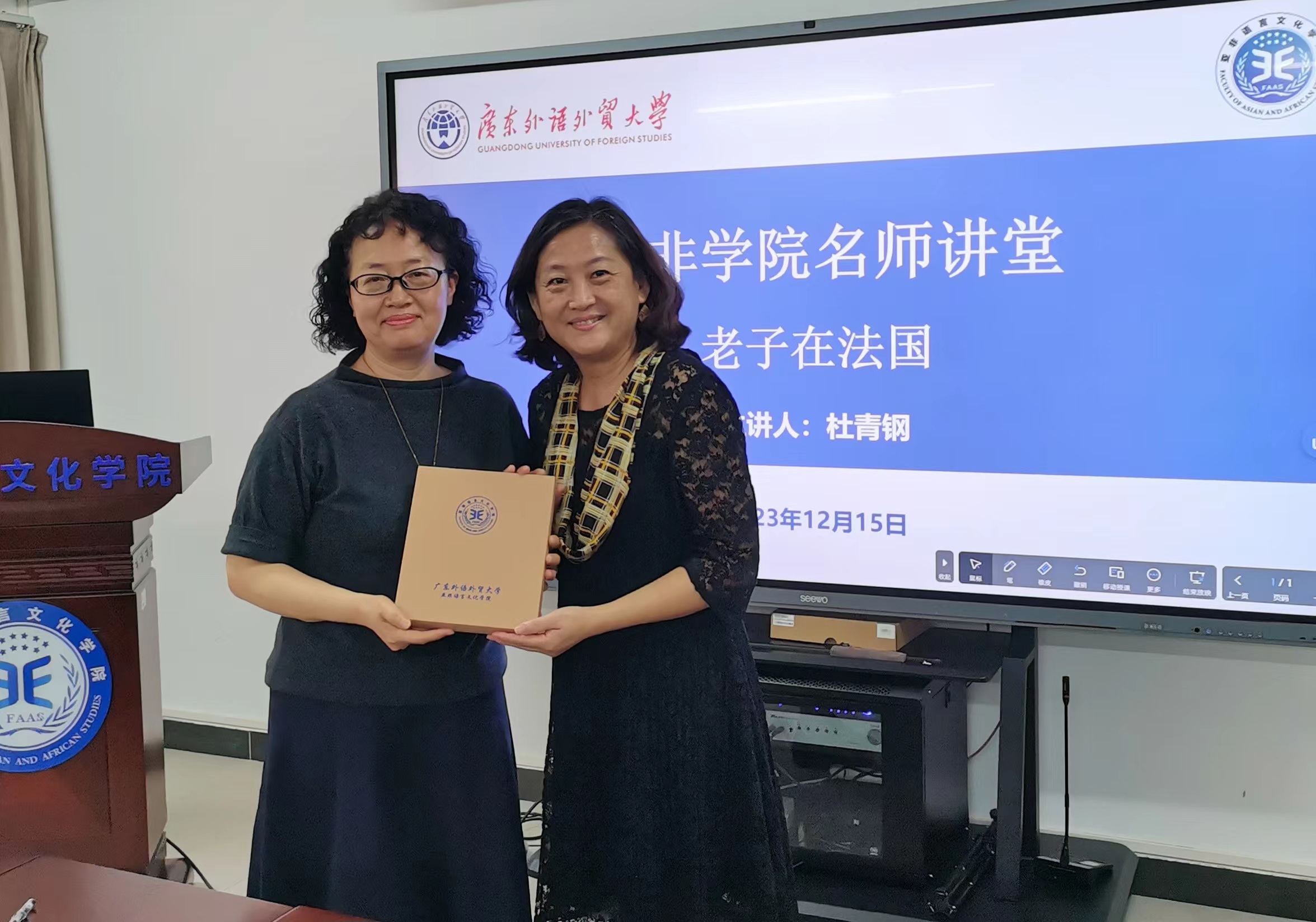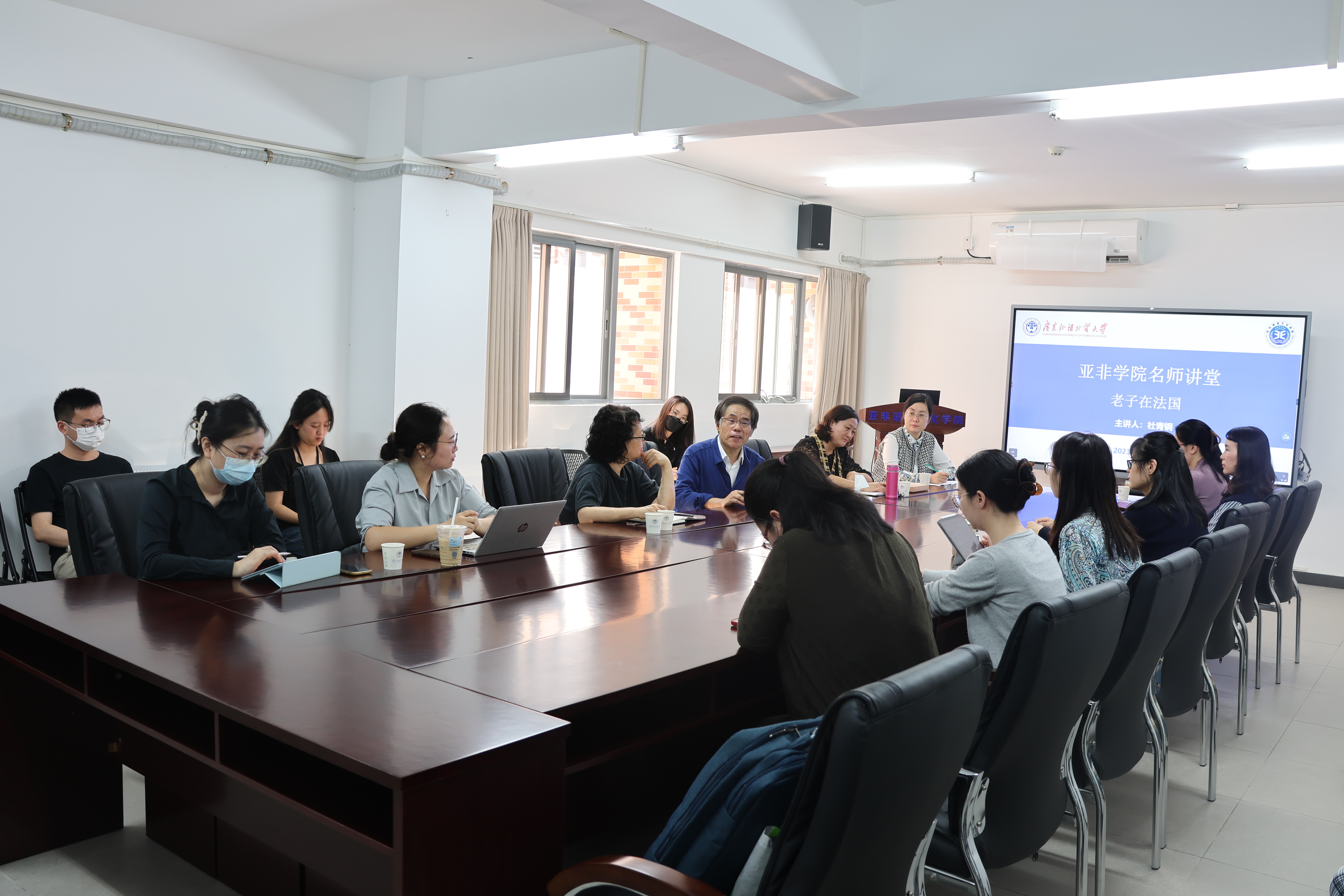 12月15日下午,法国龚古尔文学奖中国评选组委会主席、武汉大学杜青钢教授受邀做客亚非名师讲堂,做题为“老子在法国”的学术讲座。讲座由BETVLCTOR伟德在线主办,BETVLCTOR伟德在线教师党支部、学院文学与翻译学研究团队承办,广东省科学技术厅交流合作处杨慧芳处长、BETVLCTOR伟德在线、东语学院等30余名师生参加。讲座由BETVLCTOR伟德在线院长助理田克萍主持。