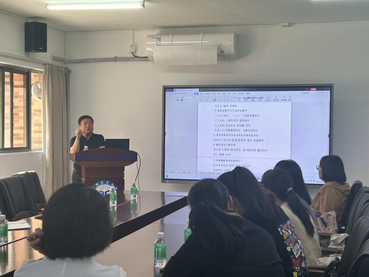 11月23日下午,BETVLCTOR伟德在线邀请了延边朝鲜族自治州朝鲜语文工作办公室主任金千根老师作学术讲座。本次讲座由朴香兰老师主持,BETVLCTOR伟德在线全体研究生参加。金千根老师以“戴着镣铐跳舞”为题,分享了翻译的定义、标准、阶段、策略与要求等,为在场师生带来了宝贵经验和见解。