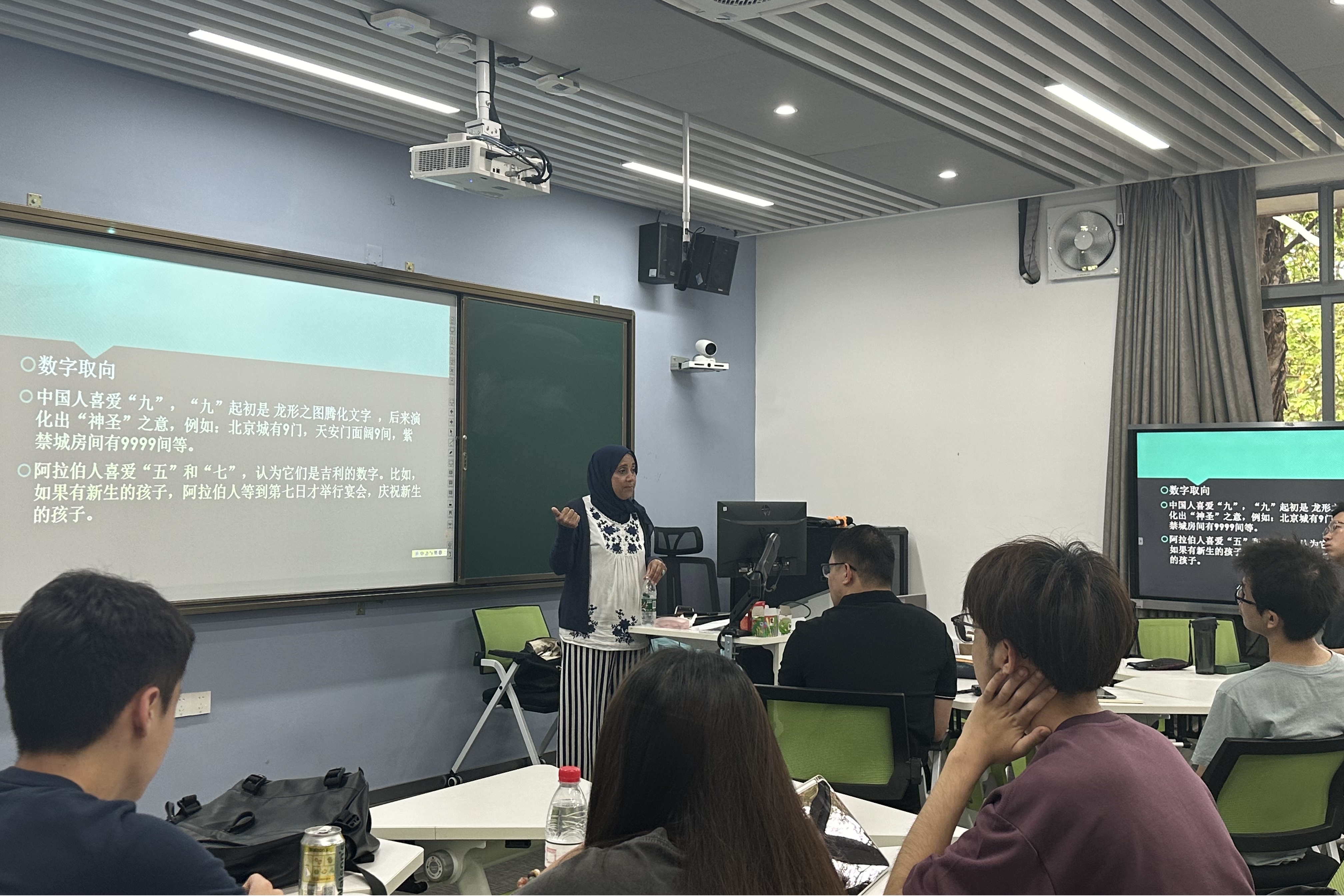 中阿共建“一带一路”视角下的汉阿互译项目邀请到埃及艾因夏姆斯大学中文系教授、世界汉语教学学会会员娜希德(Nahed Abdulla)教授,该课程吸引了各年级近30名同学参与。通过课程学习,学生不仅了解了汉语与阿拉伯语的在思维、文化方面的异同,也将每节课所学的翻译技巧逐步运用至新闻、文学作品的实践运用中。娜希德教授通过举例中阿双方在“颜色取向”、“数字取向”等例子让同学们直观了解到中阿的文化差异,并以有关“一带一路”的新闻文本为例,介绍了状语、多项定语、“把”字句的翻译技巧,向同学们演示更贴合阅读者习惯的中阿互译方法。课程结束后,娜希德教授还与系主任劳凌玲老师一同与学生座谈,交流此次活动的心得体会。学生们表示,通过此次学习受益匪浅,对中阿互译技巧有了更深刻的认知,并真诚感谢教授的耐心解答。会议结束之时,劳凌玲老师总结道,此次活动构建了中阿交流的桥梁,希望同学们能在中阿互译的道路上有所成长,成为具有国际视野的广外学子。