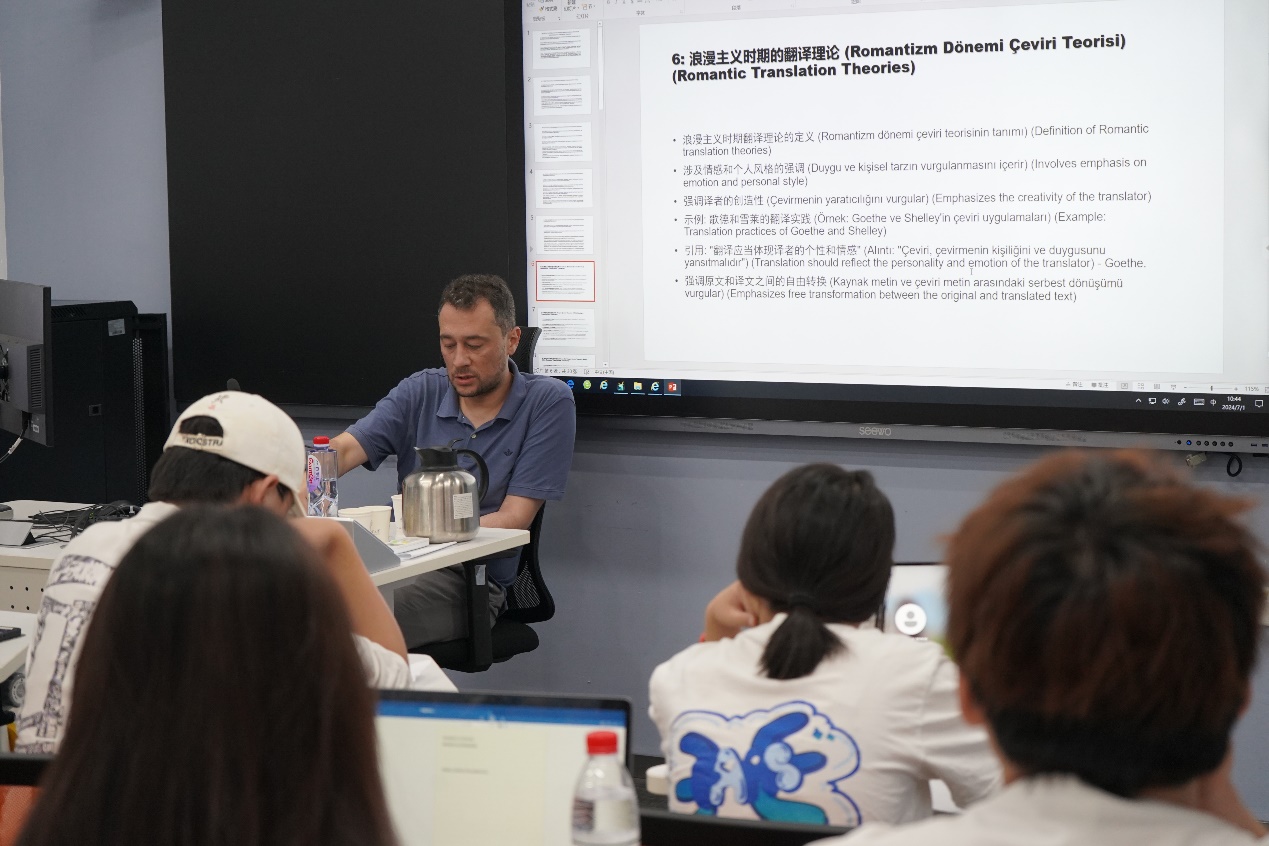 “翻译之桥:培养全球化时代的翻译人才”系列讲座邀请到土耳其安卡拉哈哲·巴依然大学(Ankara Hacı Bayram Veli University)的知名汉学家、翻译家吉来(Giray Fidan)教授,为土耳其语系本科生进行授课,吸引了来自各年级的近20名学生报名参与。通过课程学习,学生得以学习了当代翻译人才所需的技能和素养,包括翻译理论与技巧、翻译职业发展以及跨文化交流等,并结合所学翻译理论与技巧进行了翻译实践与调研报告。吉来教授著作等身,授课经验丰富,在他的悉心指导下,学生们学习了如何解决在翻译过程中遇到的语言障碍和文化差异,如何通过注释和背景资料帮助读者理解原作内涵。通过学习,同学们认识到译者不仅需要扎实的语言功底,更要具备跨文化沟通能力和敏锐的文化感知力。同学们不仅加深了对跨文化翻译的理解,还明确了未来在翻译领域的努力方向。部分学生在活动结束后自发组织了翻译读书会,希望继续交流与学习相关知识。