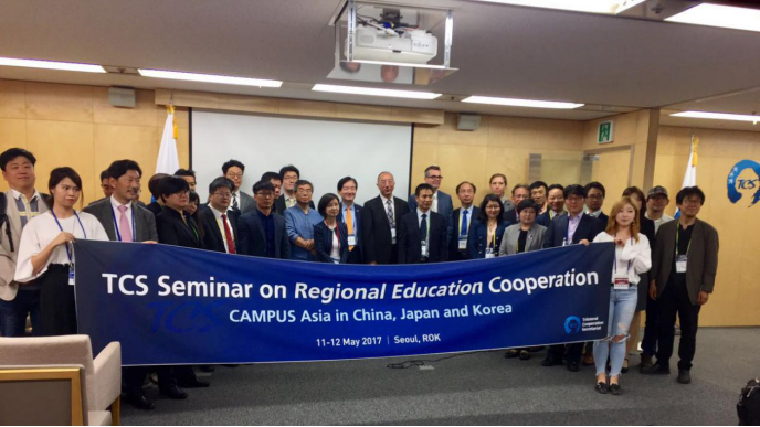 本网讯 在2016年1月30日举办的第一届教育部长会议上, 三国教育部长高度评价了亚洲校园项目, 并就三国应该继续实施并扩大亚洲校园项目达成共识。根据中日韩三国教育合作首尔宣言, 中日韩三国合作秘书处于2017年5月12日在韩国首尔四季酒店举办“中日韩三国高校亚洲校园合作研讨会”, 为三国负责亚洲校园项目的教授们和老师们提供一个交流和分享的平台。本次大会邀请三国大使馆教育参赞以及三国的40多位亚洲校园的项目负责人,我校东语学院亚洲校园教育中心副主任全优老师作为我校代表出席了本次论坛。