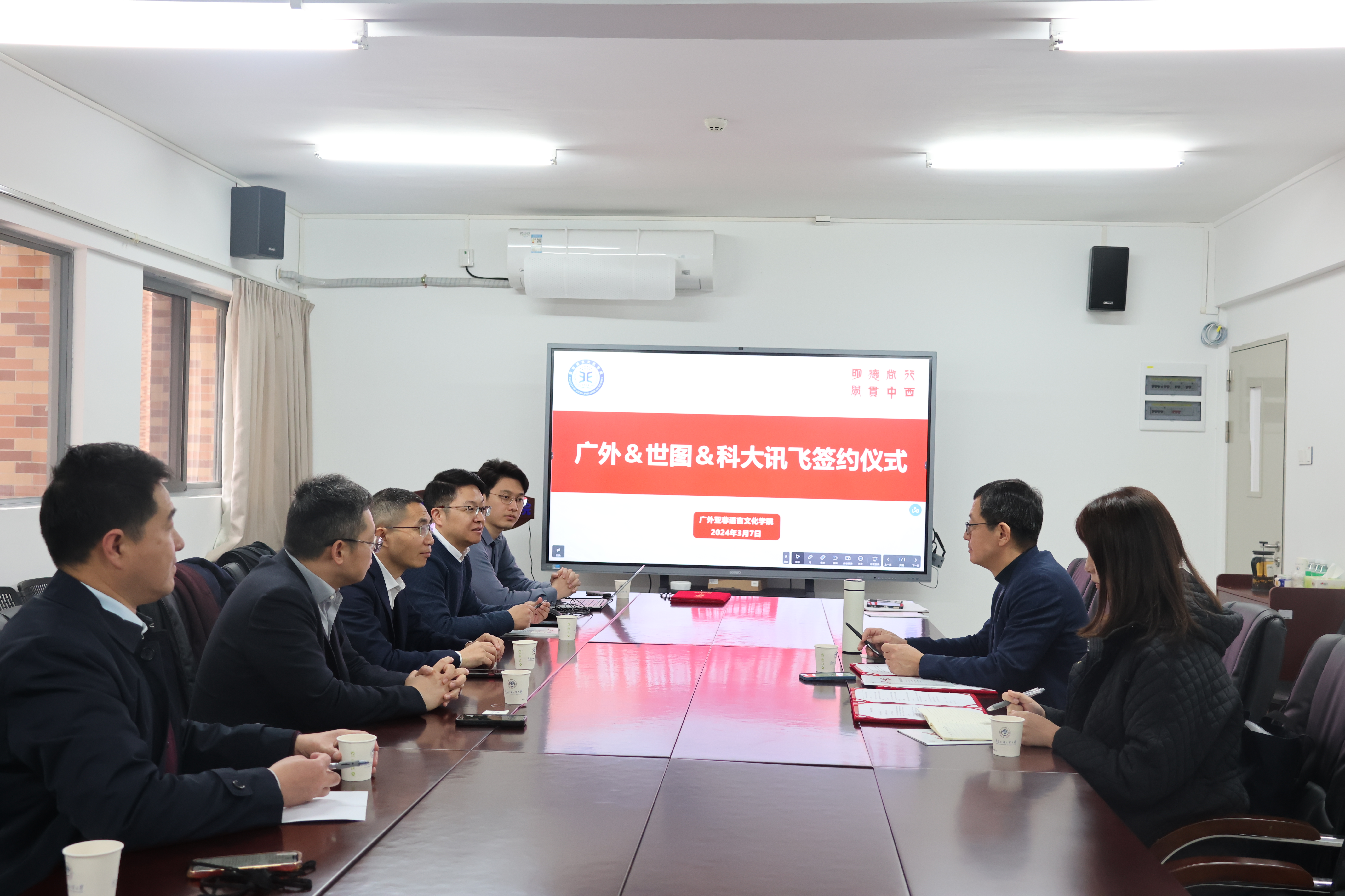 3月7日上午,“广外&世图&科大讯飞合作框架协议”签约仪式在BETVLCTOR伟德在线白云山校区BETVLCTOR伟德在线会议室举行,广外BETVLCTOR伟德在线院长全永根、世图广东公司总经理卢家彬、科大讯飞高教产品线华南区经理李征华渠道合作上的构想和愿望,对语言教学功能和学习辅助功能的实现、多语种虚拟仿真教学、翻译实践、自主学习的需求进行了探讨。