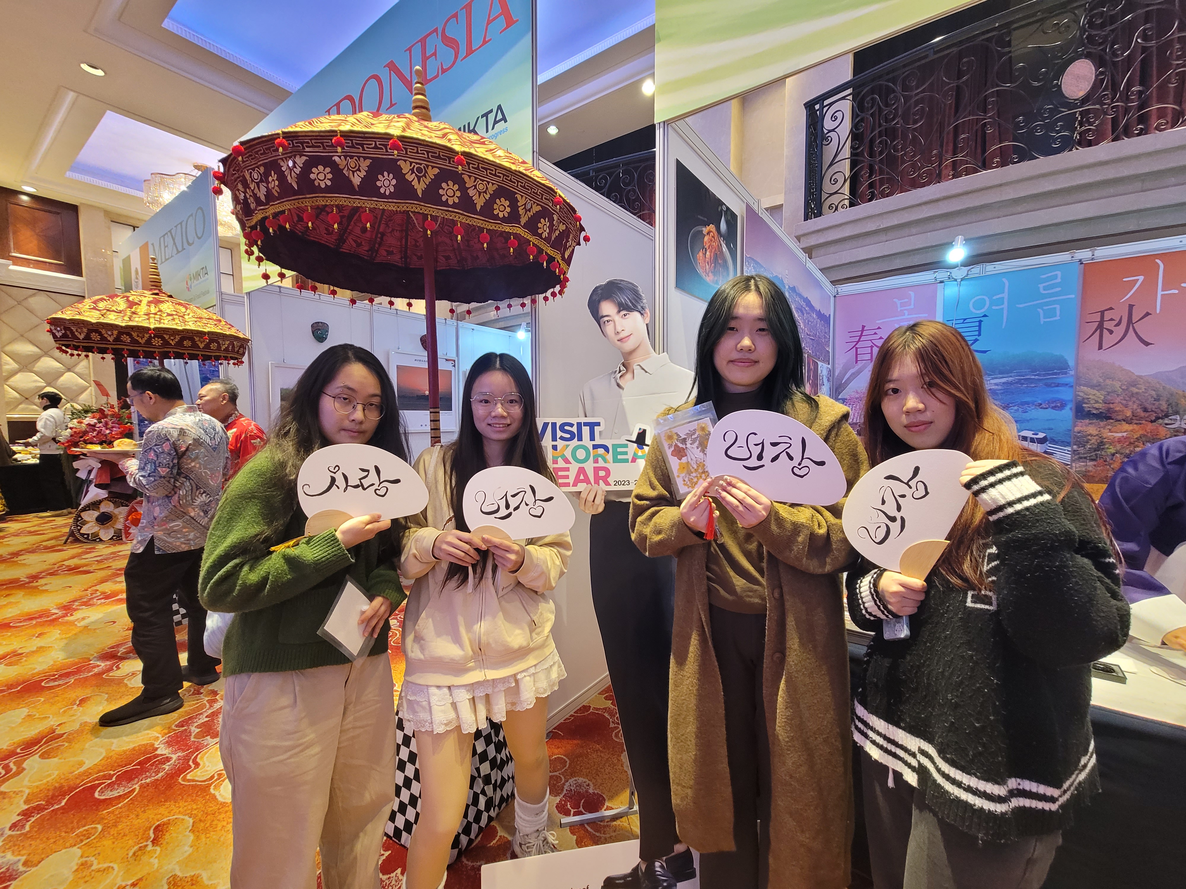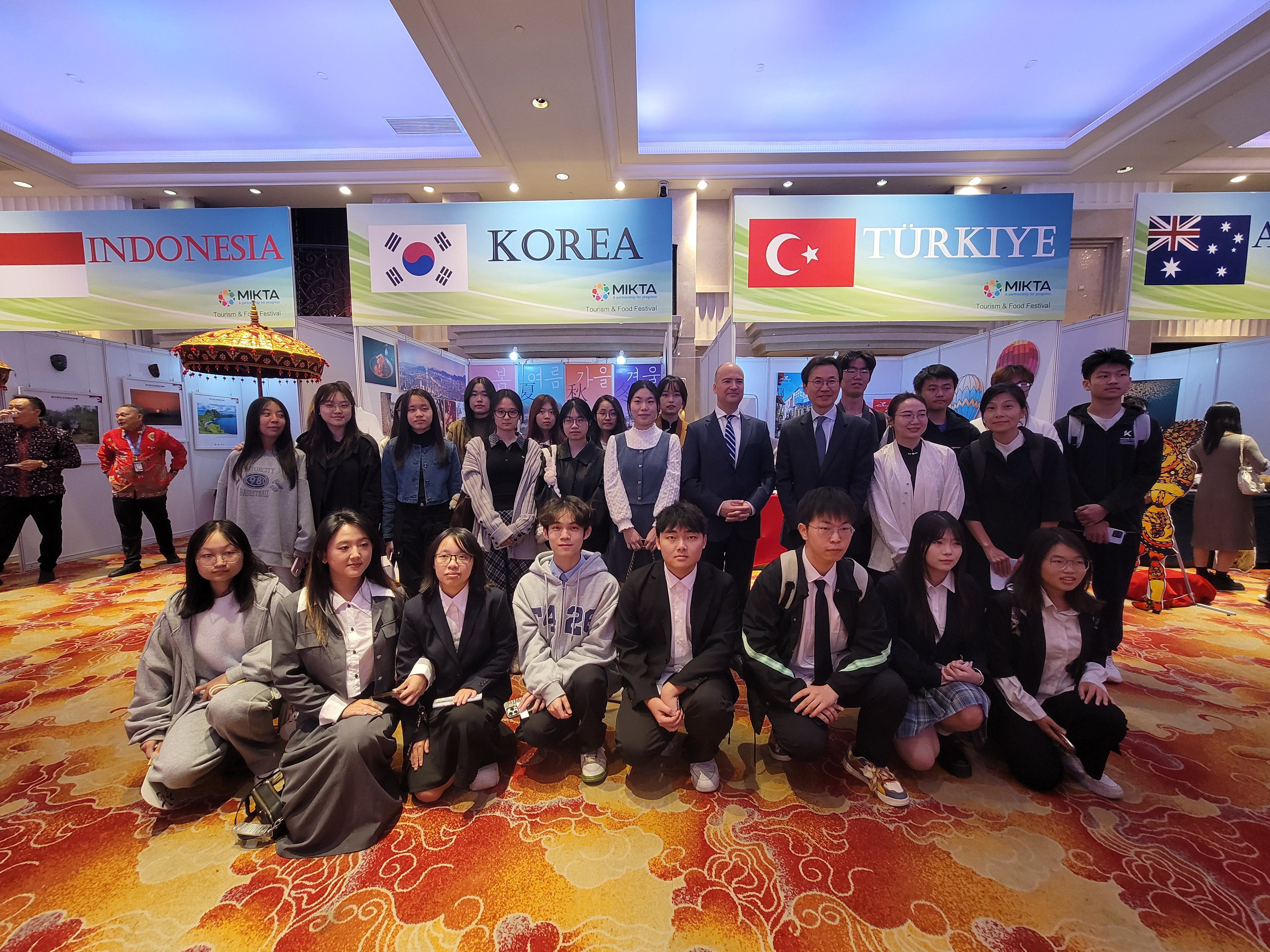 该活动旨在通过美食和旅游推介,促进MIKTA成员国与中国的文旅交流,加强文化的沟通理解与尊重,助力构建平等互利的全球多边合作体系。活动现场,韩国驻广州总领事姜相旭(강상욱)和土耳其驻广州总领事卡安·巴什阔特(Kaan Başkurt)与同学们亲切地交流并合影留念。