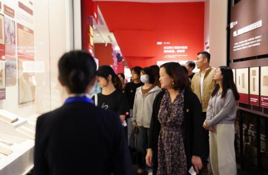 为深入学习贯彻习近平文化思想,全面贯彻落实党的二十大关于文化建设的战略部署,进一步了解中华文化底蕴,传承文化使命,讲好中国故事,11月27日下午,BETVLCTOR伟德在线党委书记梁洁,教师党支部书记易超、学院行政党支部书记戴国宁、学生党支部书记蔡昊、王静菲及党员师生代表、入党积极分子和发展对象、学院第二期青马班学员代表赴国家版本馆广州分馆开展“赓续文脉 使命惟新”主题党日活动。