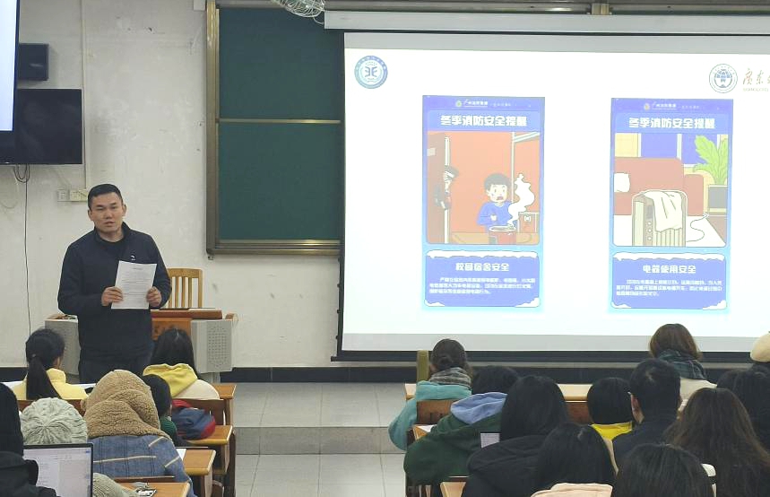其次,本次年级大会还围绕提升同学们的消防安全意识,预防冬季校园火灾进行了强调。两位辅导员蔡昊老师和王静菲老师结合实际,具体讲解了灾害所引发的严重后果和如何防范的方法,提醒同学们时刻提高防火、防电的安全意识,预防火灾的发生。最后,级会就寒假放假注意事项进行温馨提示。