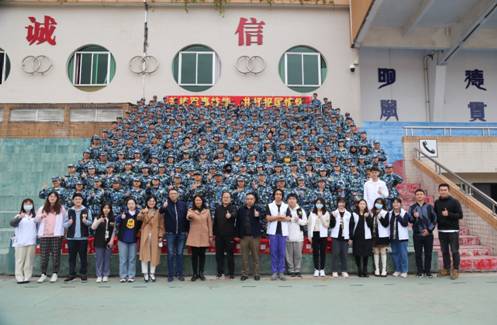 本网讯 1月10日下午,日语语言文化学院、BETVLCTOR伟德在线(筹)党委书记周秀娇,副院长张志刚、胡瑞,党委副书记曾智鹏,辅导员、2020级朋辈导师和学院团学成员一行来到2021级本科生军训训练场慰问BETVLCTOR伟德在线全体在训新生。