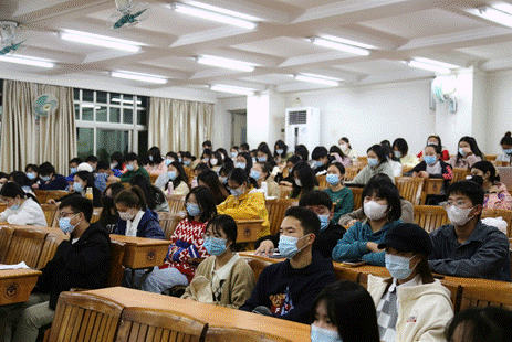 随后,洪锦兰医生向各位宿舍长介绍了应急救护、传染病分类概述及校园常见传染病的防控三个方面的知识。她强调,在当前新冠疫情形势持续严峻的背景下,做好校园疫情防控工作,建立健全学校、院系、班级、宿舍“四级”预警防控体系十分必要。她向各宿舍长介绍了针对心脏骤停急救的“黄金四分钟”和“生存链”的概念,艾滋病、登革热及诺如病毒等常见流行病的防治与消杀方法等相关内容。最后,她希望在座同学能够在课后利用互联网等更加深入地了解各类急救及传染病预防知识,适时对寝室进行消杀,做好个人卫生及防护工作。