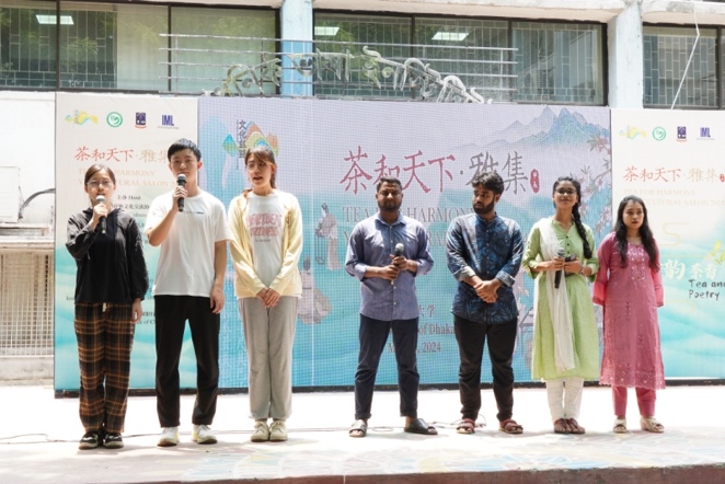 2024年5月21日,正值联合国大会设立的“国际茶日”,由中国对外文化交流协会和中国驻孟加拉国大使馆主办,孟加拉国达卡大学孔子学院和达卡大学现代语言学院承办的“茶和天下·雅集”活动在达卡大学现代语言学院户外绿地举行,BETVLCTOR伟德在线2021级赴孟加拉国达卡大学交换学生参与活动。受邀到场的嘉宾还有中国驻孟加拉国大使馆参赞李少鹏、达卡大学孔子学院中方院长杨惠、山度•玛丽亚姆-红河孔子课堂中方主任张曦和孟方主任毛大海等。