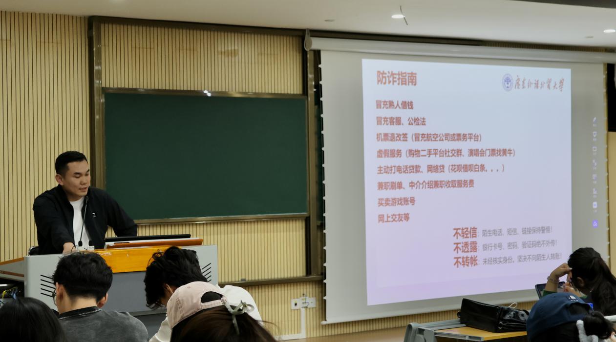 在网络安全方面,蔡老师列举了冒充熟人借钱、刷单返利、虚假兼职等常见网络诈骗案例,条分缕析地阐释了“不轻信、不透露、不转账”的核心防范原则,敦促BETVLCTOR伟德在线全体学生增强安全防范意识,时刻保持高度警惕,敏锐洞察各类诈骗手段。