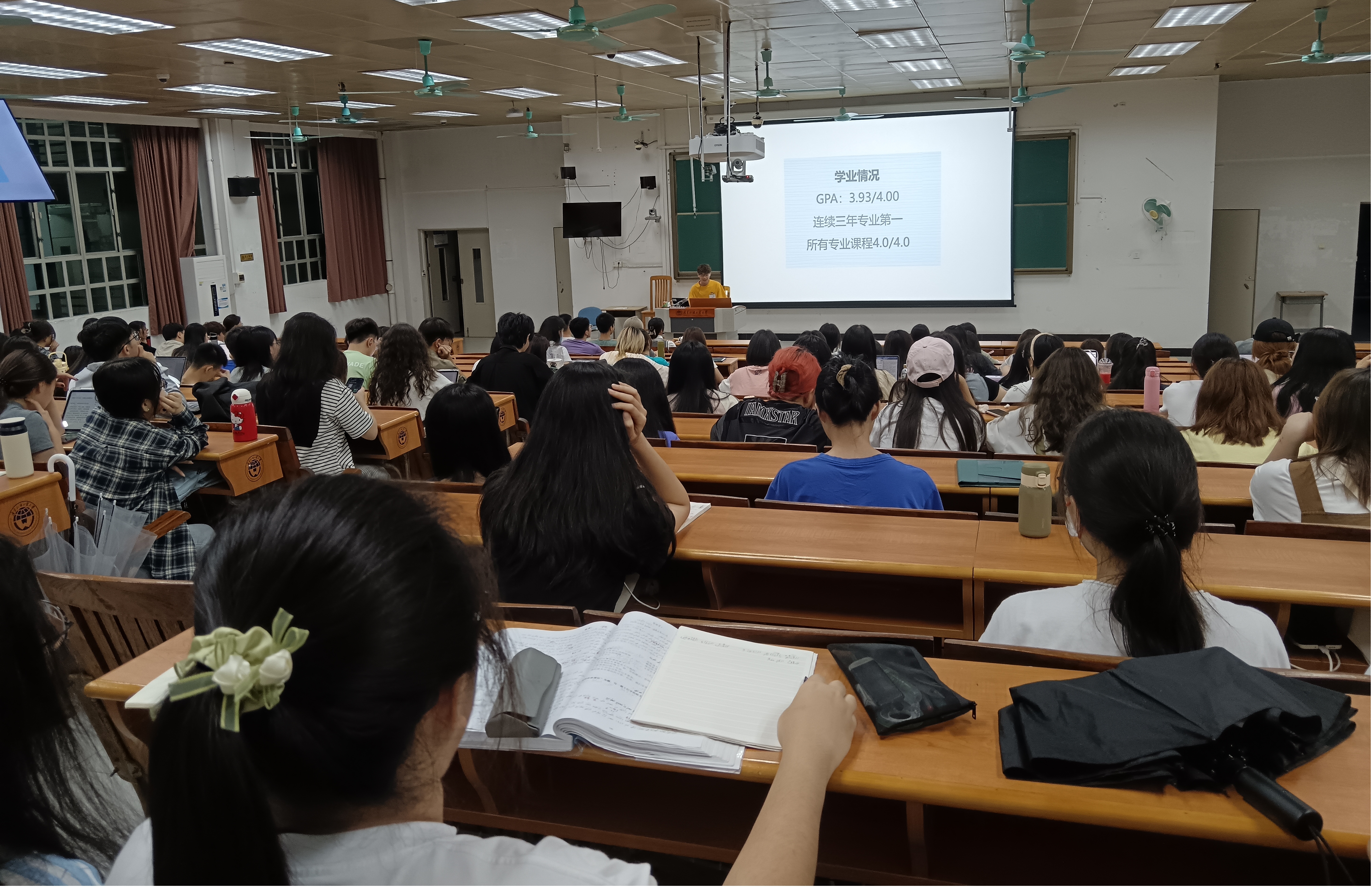 第二位分享的是曾志琦同学,他从自身优异的英语成绩出发,为同学们介绍了四六级考试的流程及相应备考方法和高分秘籍。