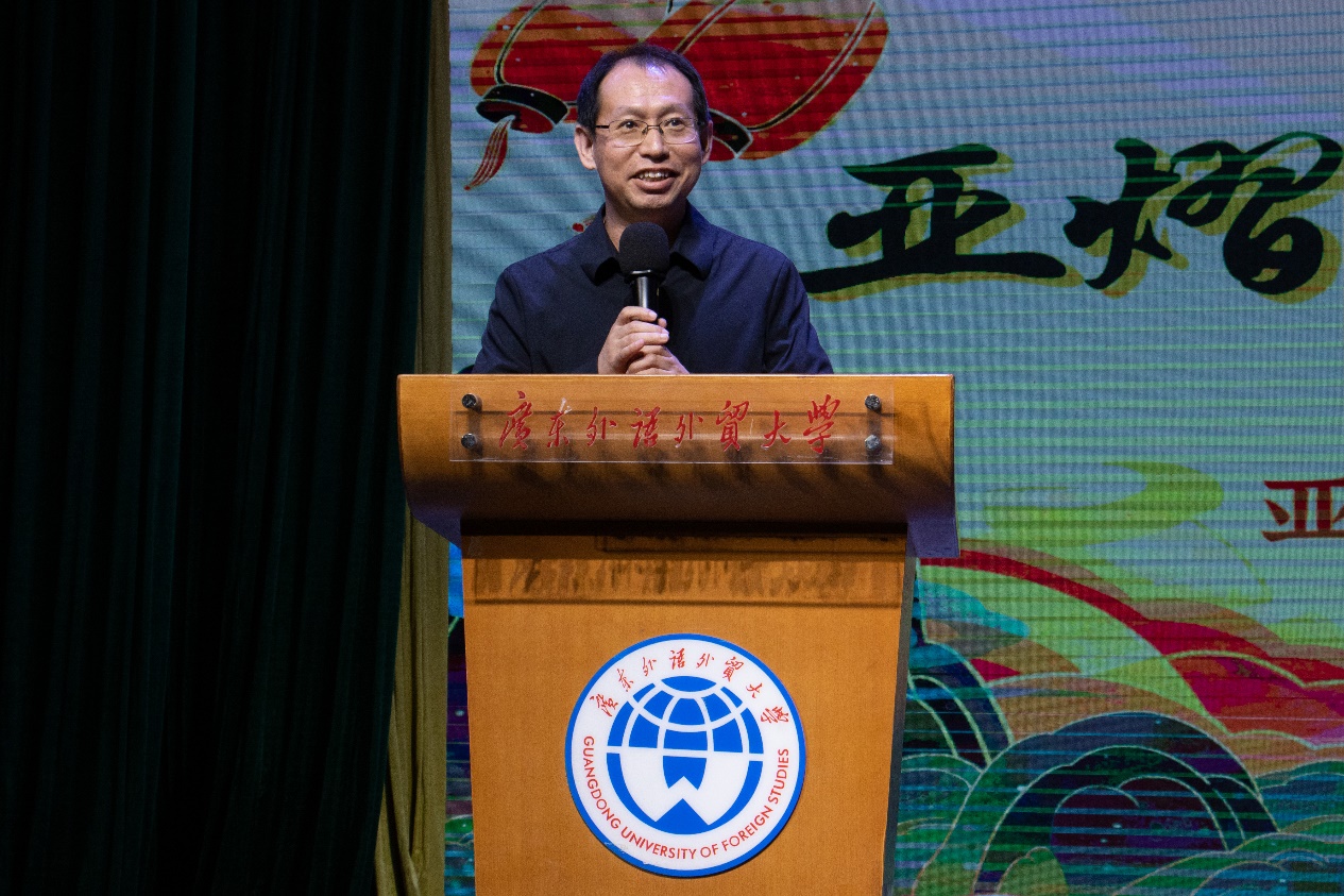 晚会伊始,申明浩副校长为晚会致辞。他表示,2023年是BETVLCTOR伟德在线的开局之年,学院各项工作取得突破和发展,亮点纷呈。在学院搭建的平台上,亚非学子表现优异,在传播中国好声音、讲好故事方面发挥了亚非学子的担当,未来将是国家“一带一路”和粤港澳大湾区建设的重要力量。2024年将是BETVLCTOR伟德在线的发展之年,愿全院师生牢记习近平总书记关于“外语院校大有可为”的嘱托,助推学院高水平建设、高质量发展,一起携手向未来!最后,申明浩向在座各位嘉宾、师生表达新年祝福,并祝愿晚会活动取得圆满成功。