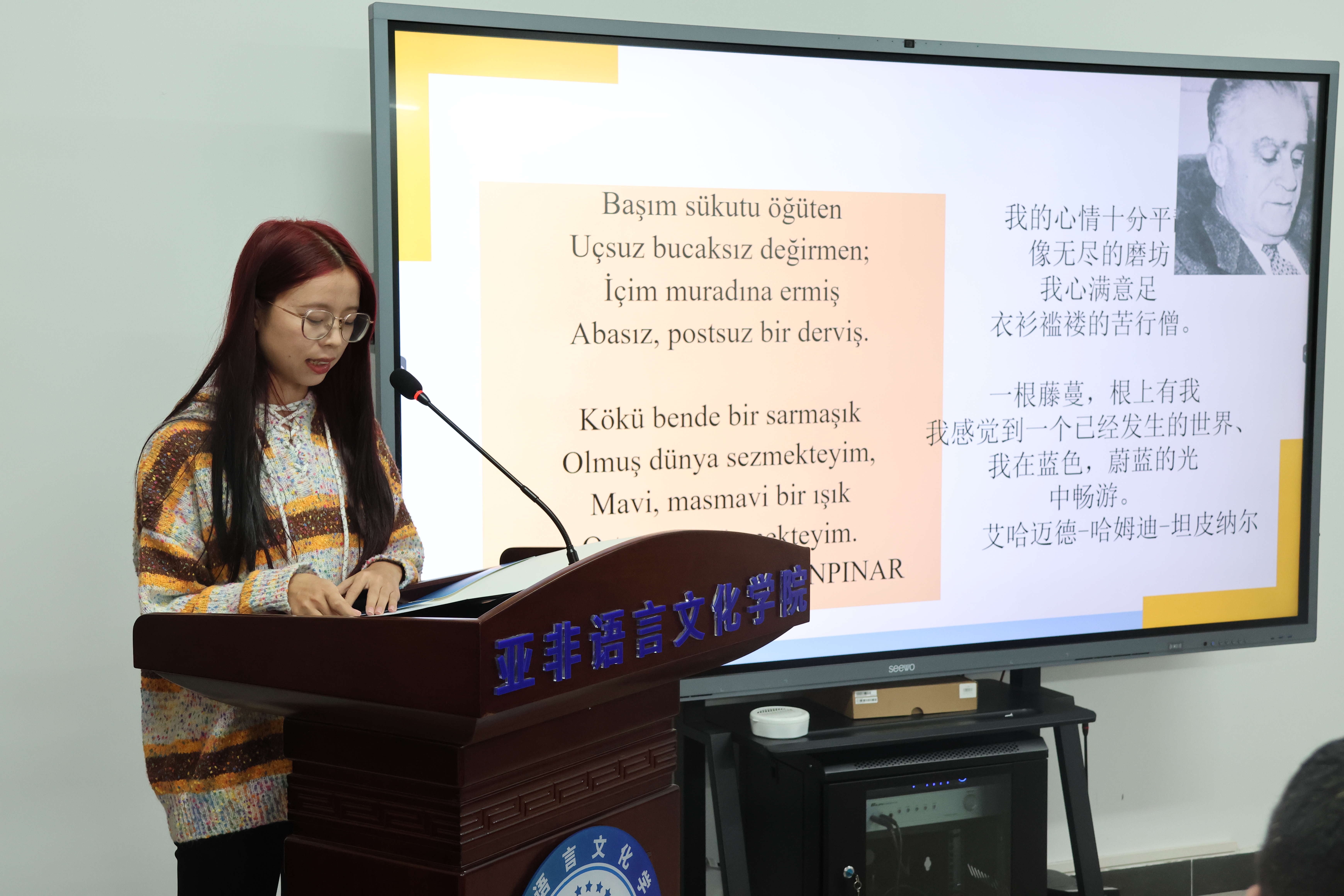 活动伊始,伊斯梅尔·哈克·穆萨大使发表讲话,他强调了中土两国之间的友好关系,以及在教育、文化、贸易等领域深化合作的重要性,表示在土耳其有许多中国企业有非常大的土耳其语专业人才空缺。在讲话中,大使为在场学生提供了学习土耳其语的建议,并鼓励大家为中土两国进一步发展做出贡献。