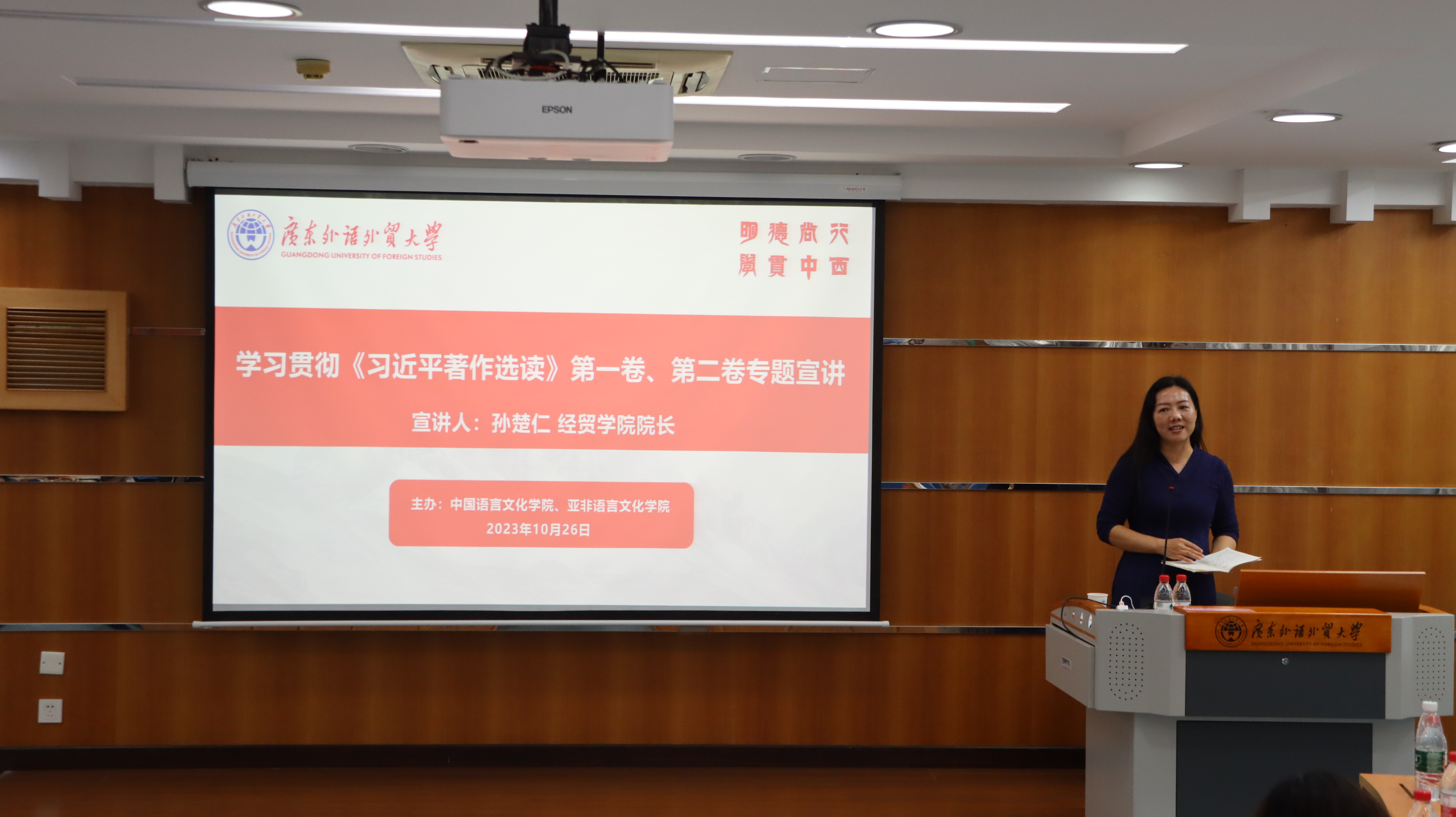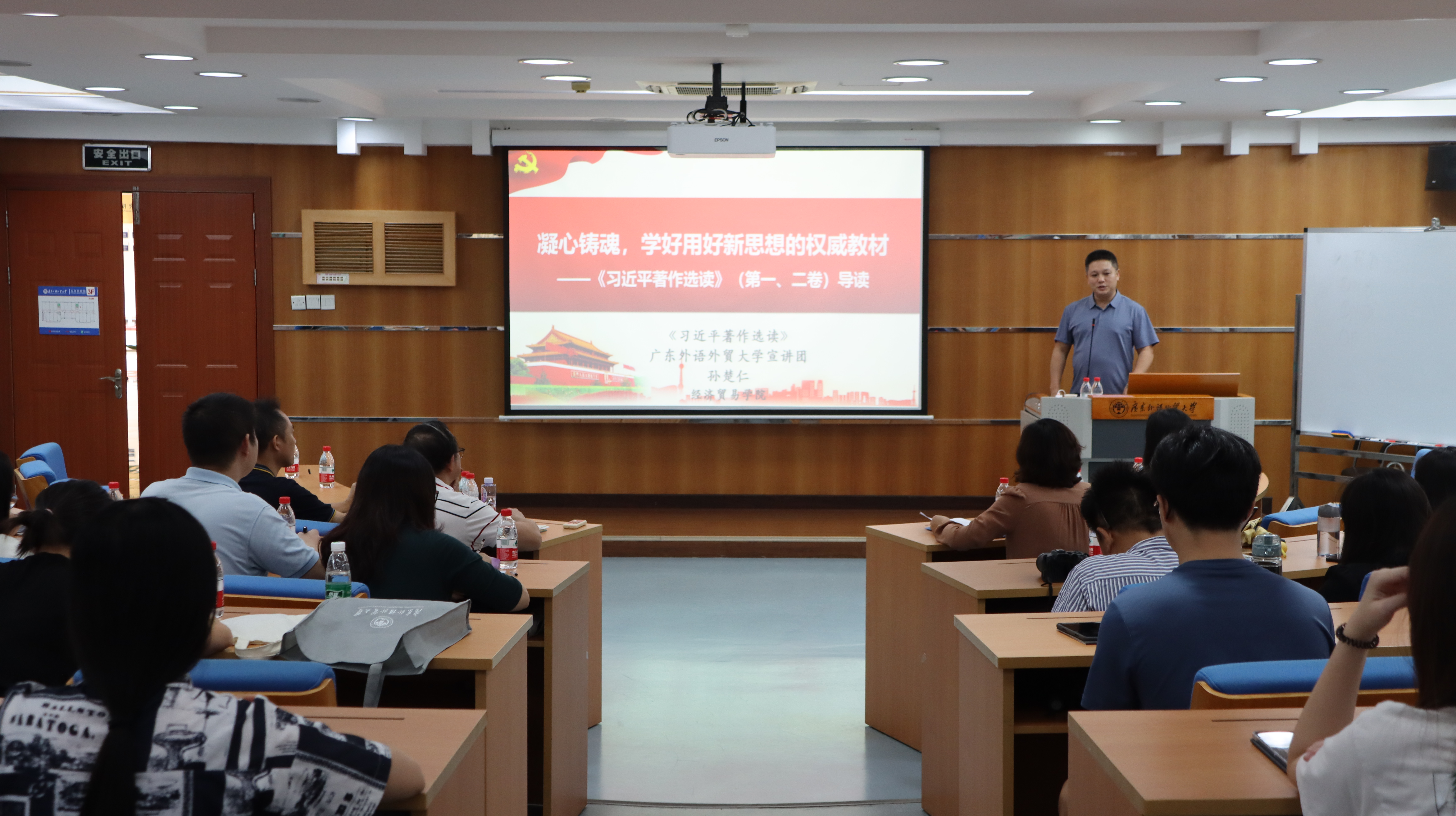 本网讯 10月26日下午,中文学院党委和BETVLCTOR伟德在线党委在九教305联合开展《习近平著作选读》第一卷、第二卷专题宣讲会。本次宣讲会由经济贸易学院院长孙楚仁进行宣讲,BETVLCTOR伟德在线党委书记梁洁担任主持,中文学院党委书记谢秀兰做总结发言。中文学院和BETVLCTOR伟德在线的师生党员参加了会议。