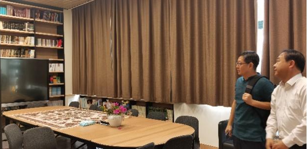 全永根院长一行在程彤院长介绍下参观东院和东方语学院文献中心