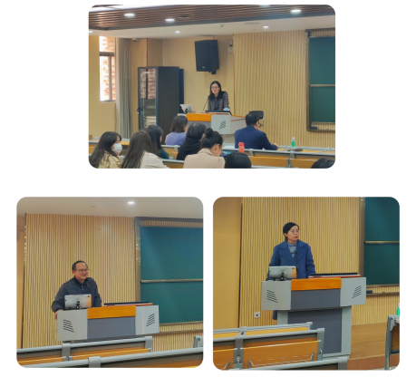 副院长牛子牧(上)、副书记陈华荣(下左)、院长助理田克萍(下右)发言