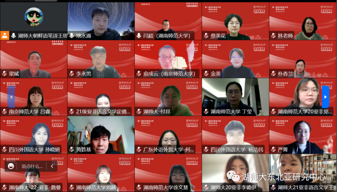 2022年12月17日,由湖南师范大学东北亚研究中心主办,湖南师范大学韩国学研究所、外国语学院朝鲜语系承办的第一届亚非语言文学研究生论坛成功举办,BETVLCTOR伟德在线朝鲜语系学生代表何春娥、何东明、严菁踊跃参赛。最终,学生何东明的论文获评优秀论文奖。