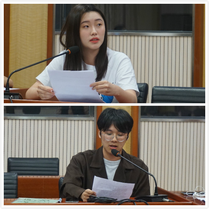 亚洲校园18级学生代表刘靖(上图)、朱阳珂(下图)发言