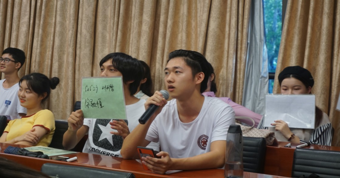 学生们一一做完自我介绍后,三国学生代表依次进行了发言。他们表达了对另外两个国家的好奇和渴望,以及接下来对于学习三国语言、经济、历史、文化的目标,展现了三国学生的蓬勃朝气。