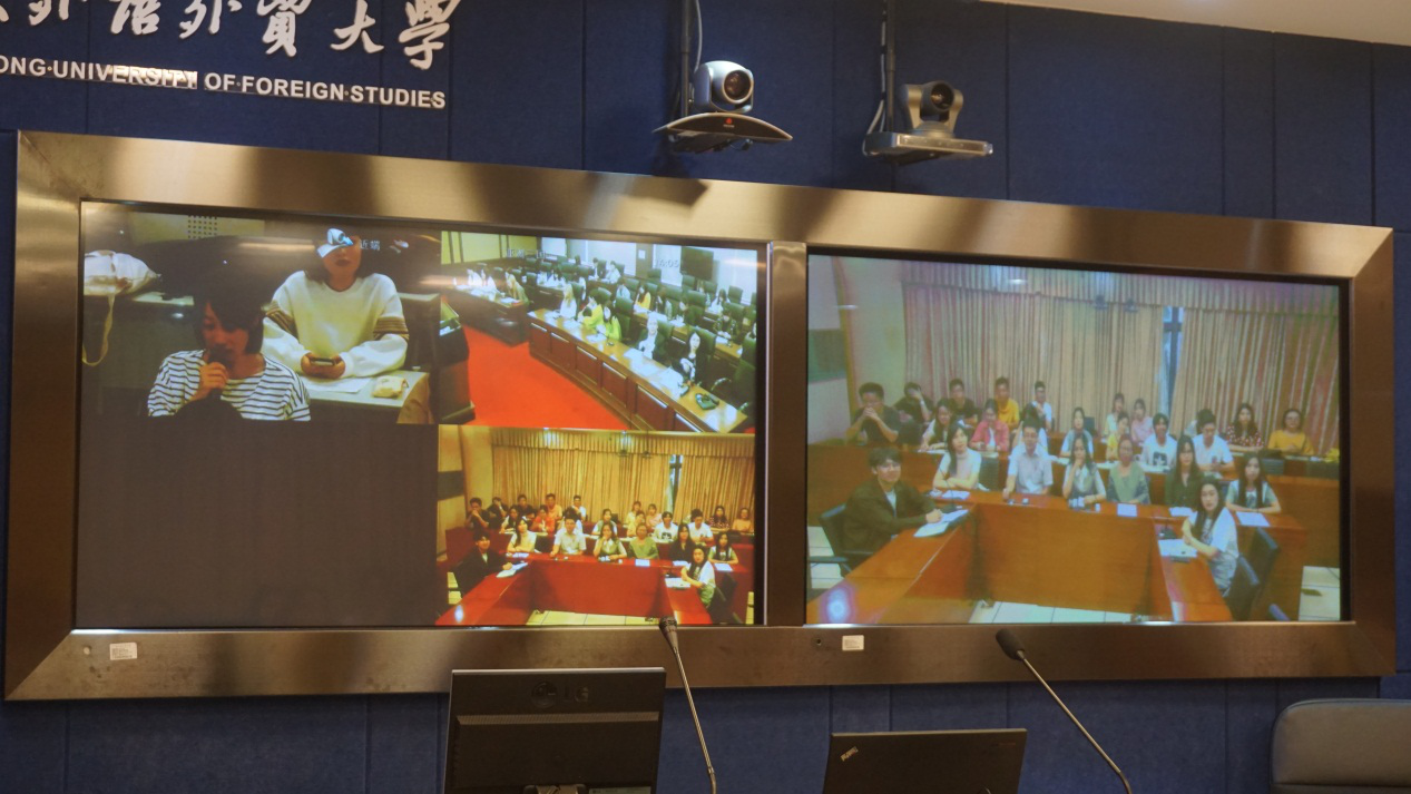 结团式正式开始前,2018级亚洲校园的同学和老师们均按时就坐,期待着与日韩两国的学生和老师进行远程见面与交流。中日韩亚洲校园三国结团式于北京时间三点三十分正式开始,各国老师首先进行了简单的交流。随后,各国学生用母语之外的两国语言进行自我介绍。学生们纷纷表示,他们很喜欢对象国的文化,渴望进一步了解另外两个国家,并且很期待与大家的见面。各国学生们热情开朗,现场氛围活泼有趣。