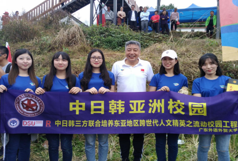本网讯:2018年11月4日上午,我校亚洲校园部分中日韩学生在实习基地——广州奥绅文化传播有限公司的赞助下以体验组选手的身份参加了在梅州市平远县八尺镇角坑村举行的南粤古驿道“天翼4K高清杯”定向大赛。本站赛事由广东、江西两省联动,共吸引了参赛选手、当地村民、观光游览者约万人参与。广东省人民政府副省长许瑞生出席开幕式并为大赛鸣锣开赛。