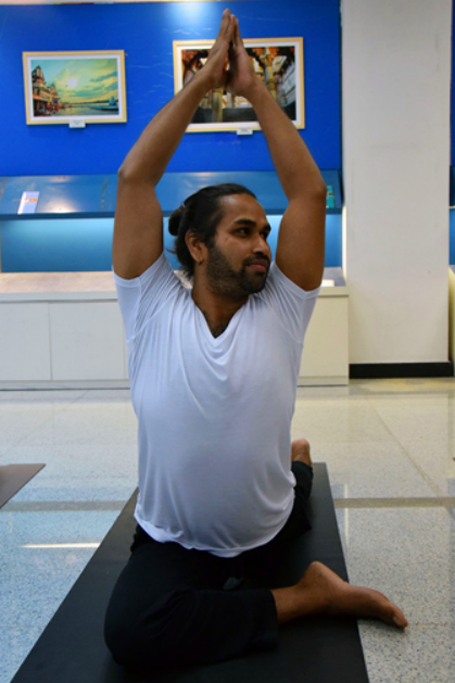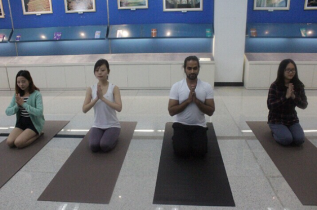 仲校长的发言结束后,来自印度瑜伽圣地——瑞斯凯诗的瑜伽大师Deepak为大家带来瑜伽表演。在校长和老师们的鼓励下,三位同学也一同参与了瑜伽体验。伴随着音乐,Deepak带领着三位同学放松身心,走进瑜伽的世界。追求宁静的瑜伽让现场观众也随之安静下来,而高难度的动作又引发阵阵掌声。