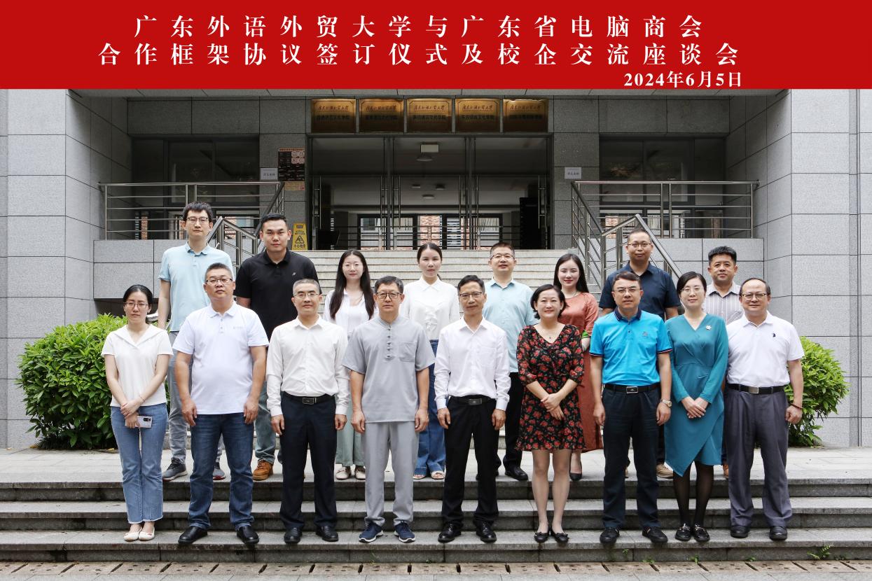本网讯 6月5日,我校与广东省电脑商会合作框架协议签约仪式暨校企座谈会在白云山校区举行。广东省工商联第十二届常委、广东省电脑商会会长马本湘,商会副会长、广东中鑫华董事长熊昊,广州有鸣信息科技董事长陈玖,掌动智能执行总裁罗剑芳,商会秘书长彭曼及商会企业代表,BETVLCTOR伟德在线全体院领导及师生代表出席会议。BETVLCTOR伟德在线党委书记梁洁主持会议。
