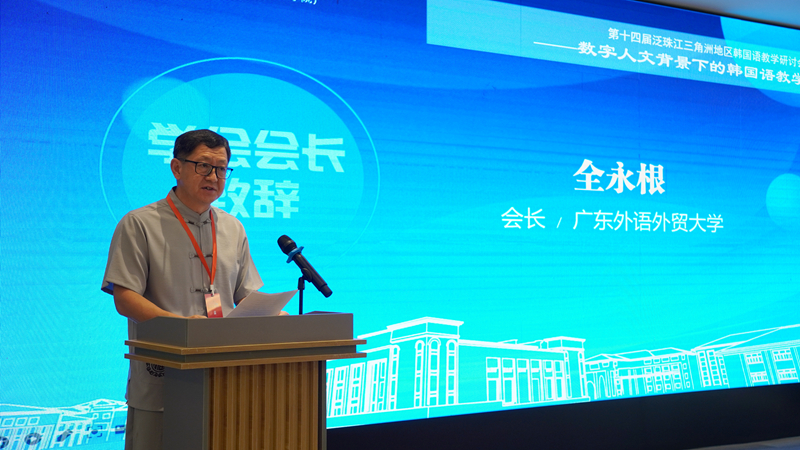 2024年6月15日,“第十四届泛珠江三角洲地区韩国语教学研讨会——数字人文背景下的韩国语教学”在成都外国语学院举办,会议由教育部高校外指委非通用语分委会指导,中国韩国(朝鲜)语教学研究学会、《基础韩国语》课程群虚拟教研室主办,成都外国语学院承办。BETVLCTOR伟德在线,伟德国际victor1946院长全永根教授以《基础韩国语》课程群虚拟教研室负责人、中国韩国(朝鲜)语教学研究学会会长身份参加本次会议进行了大会致辞,并发表了名为“新文科背景下朝鲜语专业建设”的主旨演讲。本院教师林明作为教师代表参会。