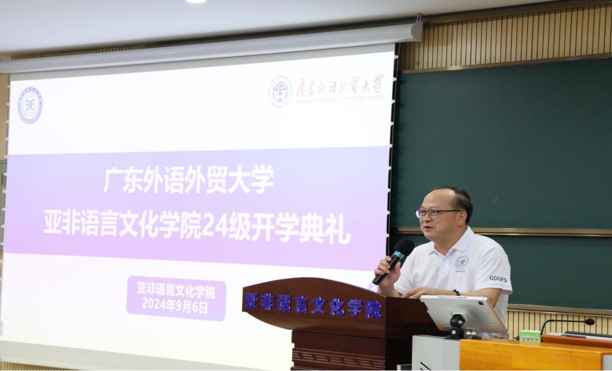 之后,全永根院长为24级新生上院长思政第一课。在对学院办学理念、开办专业与培养方向等方面做介绍后,他强调了学习亚非小语种具有深远的意义和多重价值,介绍了培养亚非语言人才的广外优势,并对全体新生给予了大学生活的宝贵建议与殷切希望。
