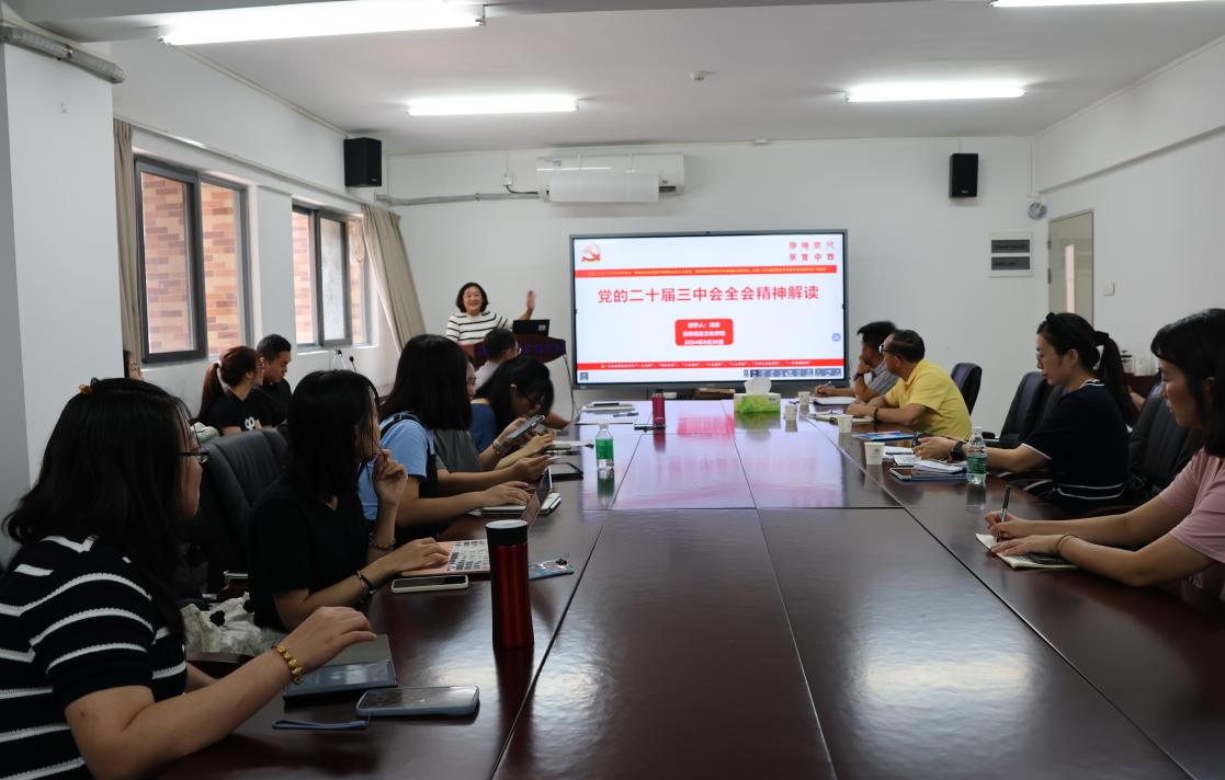 会议首先由梁洁书记作党的二十届三中全会精神解读,对进一步全面深化改革的“一大目标”、“两大任务”、“三大面对”、“七大聚焦”、“六大原则”、“十四大系统部署”及“一个特别强调”内容进行了深入学习和深刻领悟。梁洁强调党的二十届三中全会是在以中国式现代化全面推进强国建设、民族复兴伟业的关键时期召开的一次十分重要的会议,学习好、宣传好、贯彻好党的二十届三中全会精神是学院作为当前和今后一个时期的重要政治任务。希望大家能提高政治站位,原原本本、全面准确学习领会习近平总书记在党的二十届三中全会上的重要讲话精神,认真研读党的二十届三中全会文件,深刻理解党的二十届三中全会提出的一系列重大理论观点、重大工作部署,自觉把思想和行动统一到全会精神上来,推动学校和学院各项事业的高质量发展。各基层党组织要以高的标准、严的姿态,以高质量党建赋能学院事业“冲一流”攻坚。