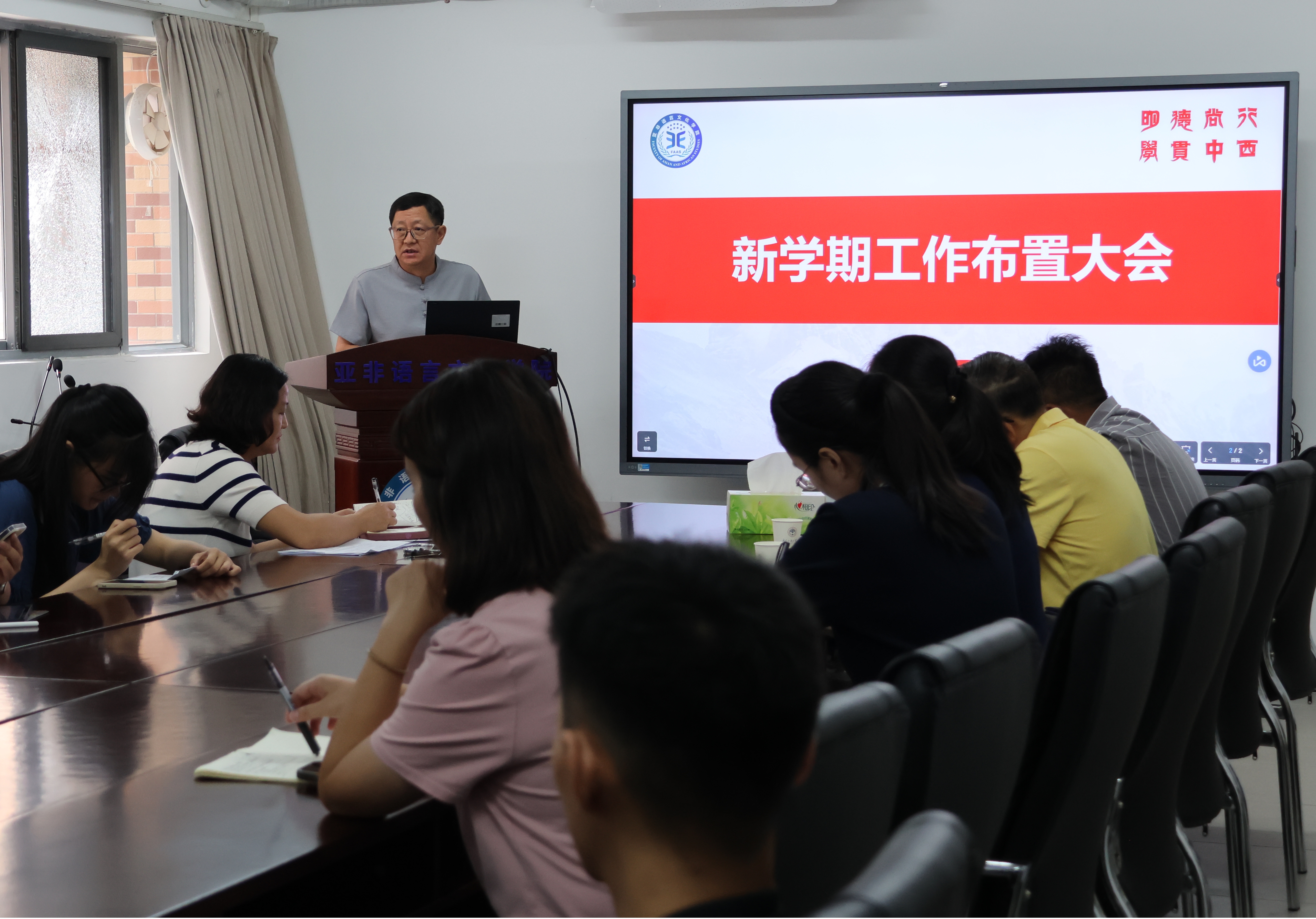 在会议上,院长全永根重点布置了本学期学院内涵式发展的几项重点工作,包括做好学院“十五五规划”的调研和起草工作、“冲一流”一流专业建设点评估工作和一流课程建设、2025版招生计划制定、筹办首届国际学术研讨会等。对教育数字化转型背景下思考如何教学的问题,全永根提出了以下几点要求:要求学院所有专业的线上线下混合式课程比例达到100%;要求小语种加专业全覆盖;要求各专业针对“十五五”发展规划组织探讨该专业的发展方向,包括招生数和师资配比等;要求教师针对个人发展状况,确定科研和教学型,因材施教的做好教学工作,为学院快速发展建设打好稳固基础。