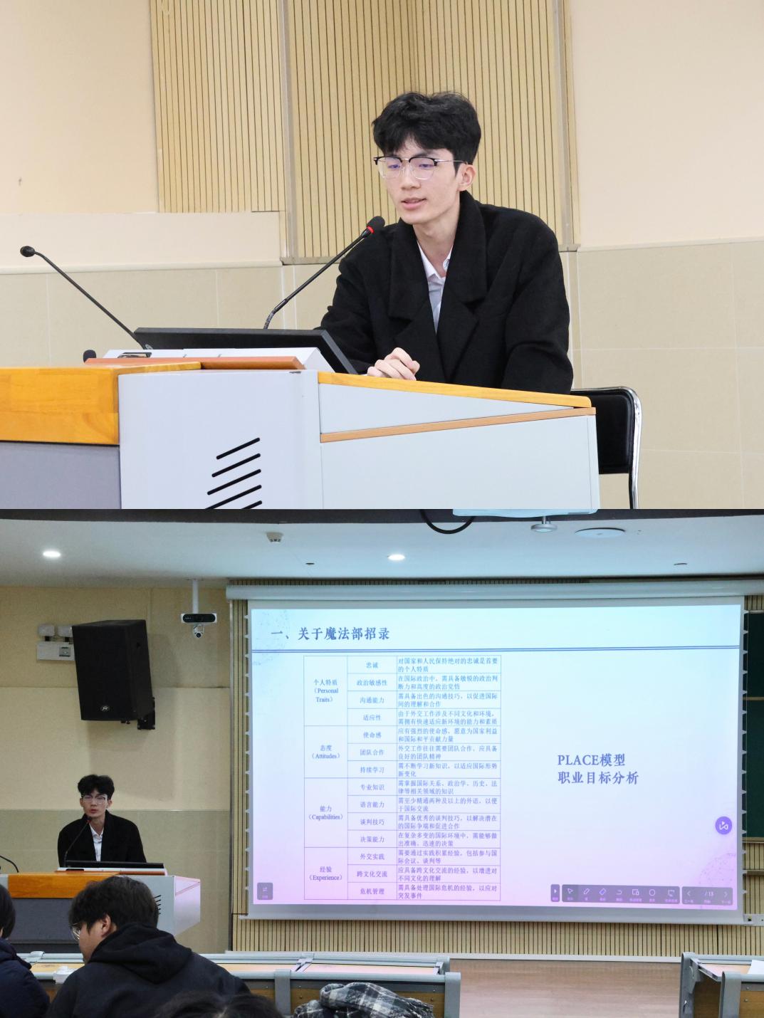 接着,乌尔都语的王俊祥同学分享了他的学习心得。他条分缕析地阐述了外交部遴选的流程与考试内容,并介绍自身的备考方法,还分享了他对大学生活及其意义的深刻感悟,引发在场同学的强烈共鸣。