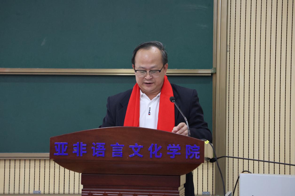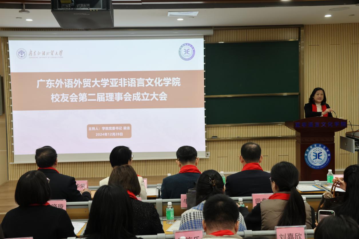 大会在温馨而热烈的氛围中拉开帷幕,梁洁对远道而来的各位校友表示了热烈的欢迎和衷心的感谢。大会伊始,申明浩副校长发表致辞。他介绍了学校在学科建设、人才培养、科研创新等多个领域取得的显著成绩,并特别提到了BETVLCTOR伟德在线在培养亚非语高素质复合型人才方面做出的贡献。他强调,校友是学校和学院最宝贵的财富,校友的成长与成就是母校最亮丽的名片,希望校友们能够继续守望相助、相互促进、携手共进。值此校庆60周年即将到来之际,他期待校友们能够积极参与校庆活动,为校友会、学校的发展献计献策。