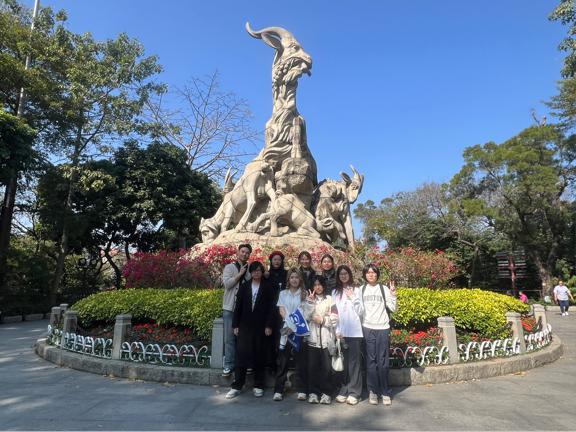 越秀公园的中山纪念碑庄严肃穆,它静静矗立在那诉说着革命先辈的壮志豪情,同学们在此驻足,仿佛能穿越时空与历史对话,深刻体会到传承历史文化的责任。而五羊碑背后的古老传说更是吸引着大家,这里传递着广州这座城市的起源与美好寓意。镇海楼的古韵让同学们沉浸其中,它宛如一部无言的史书,见证了城市的变迁与发展。同学们穿梭其中,沉浸在浓厚的文化氛围里,深知这些都是中国故事、湾区故事中璀璨的篇章,值得好好传播。
