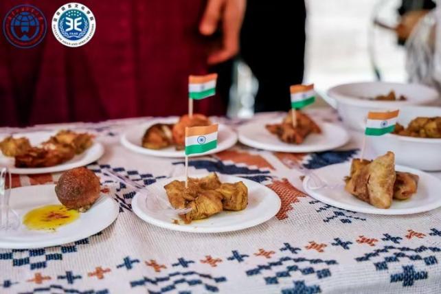 在美食集市上,各语系摊位精心准备了对象国的经典美食,吸引广大师生前来品尝,沉浸式体验各国饮食文化。阿拉伯的沙瓦玛卷饼,伊朗的玫瑰石榴冻,朝鲜族的特色冷面,坦桑尼亚的咖啡,土耳其的鸡肉卷,巴基斯坦的pakora小吃,希伯来语的北非蛋,印度的特色奶茶和咖喱料理,孟加拉国的米布丁等不同地域的美食为广大师生献上一场味觉盛宴。